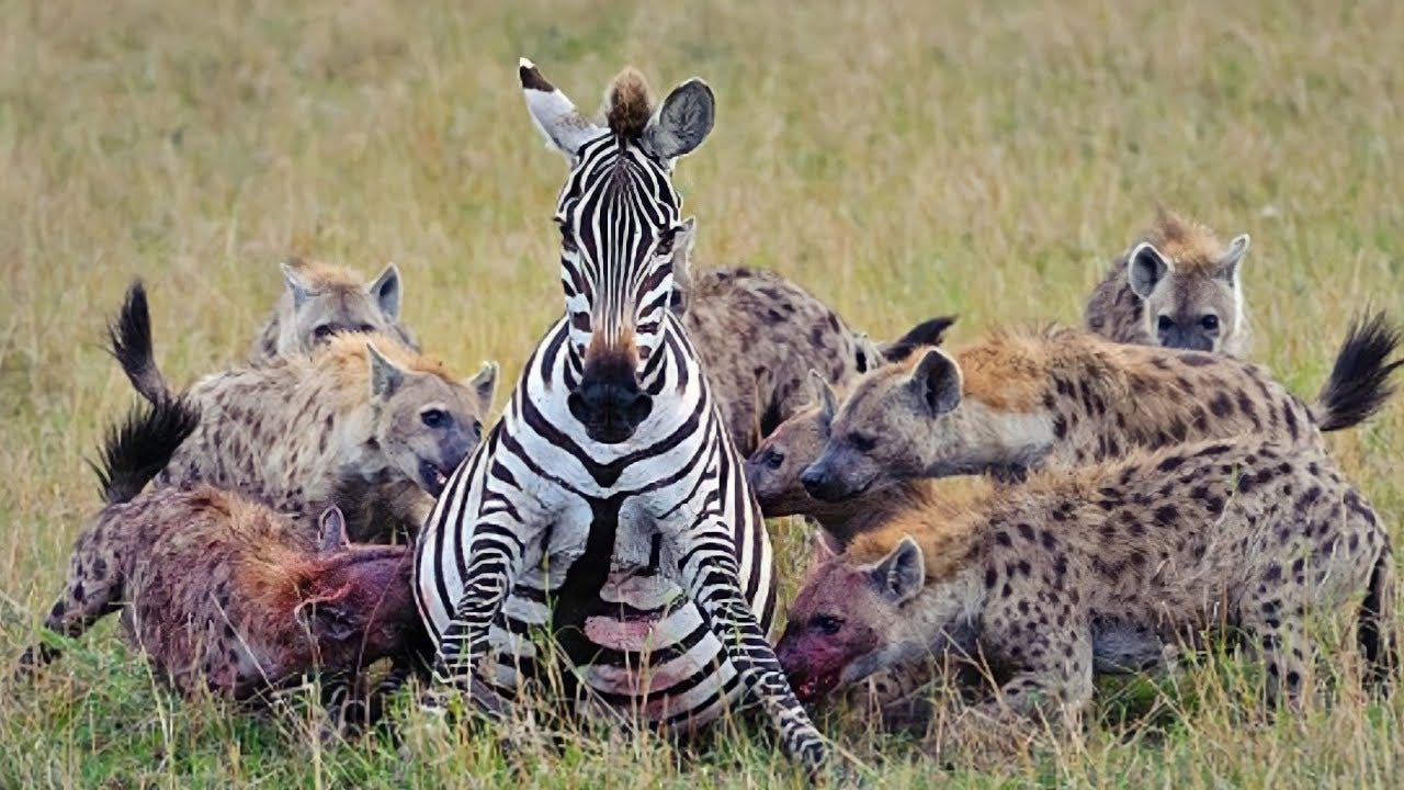 - Hyena scavenging and predation. Spotted hyenas often begin eating prey before it has fully died. Their social structure is rigidly hierarchical, dominated by powerful matriarchal lineages, and competition within clans can be brutal.
