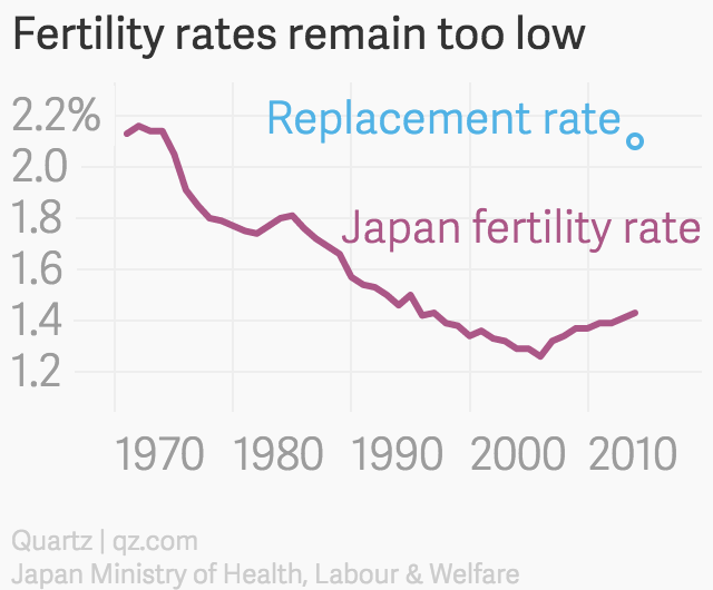 Japan’s fertility rate is half of the replacement rate of 2.1.