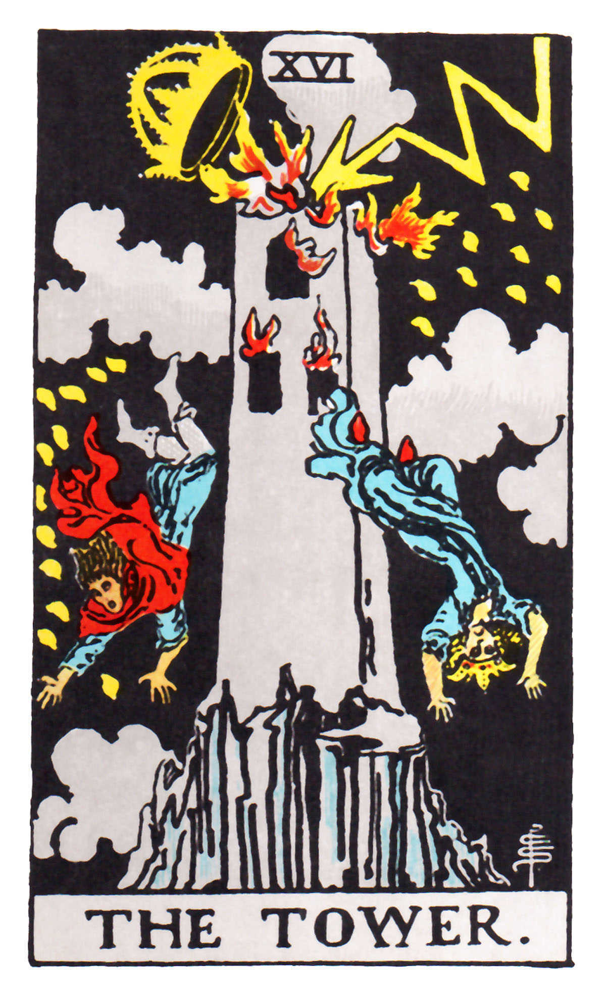 Rider–Waite tarot deck’s The Tower based on the Tower of Babel, symbol of the arrogance and pride of man who desired to rise to compete with the divine and was destroyed by God himself